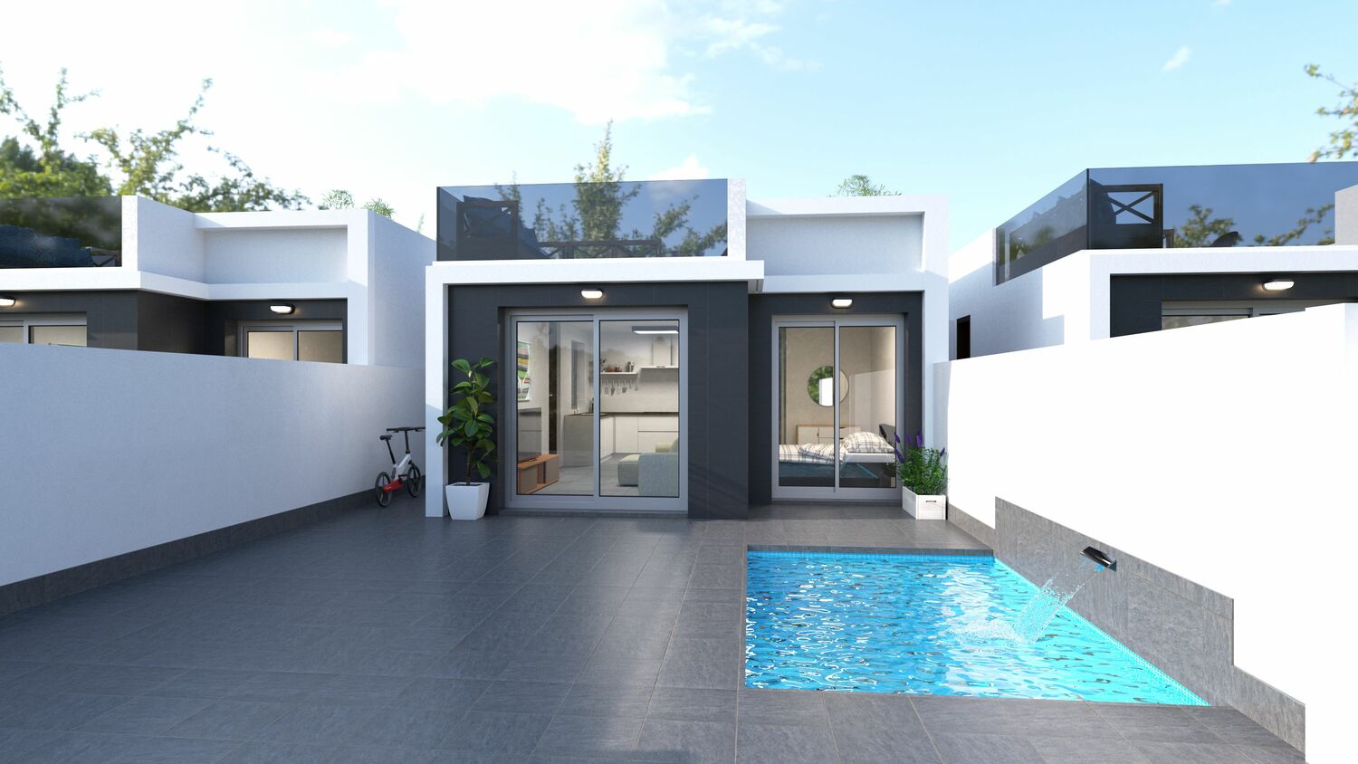 Gelijkvloerse vrijstaande Villa met 3 slaapkamers en 2 badkamers inclusief solarium en zwembad in San Javier
